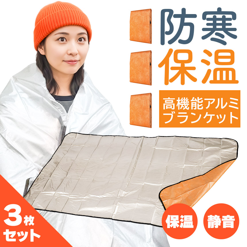 3枚セットアルミブランケット アルミシート 防災 保温 シート 180×105cm 簡易毛布 不織布付き 静音仕様 かさかさ サバイバルシート アルミ毛布 緊急用 防災グッズ アウトドア 車中泊 キャンプ 避難用 保温毛布 保温 静音 アルミシート 補助寝具 避難所 登山 断熱 防寒