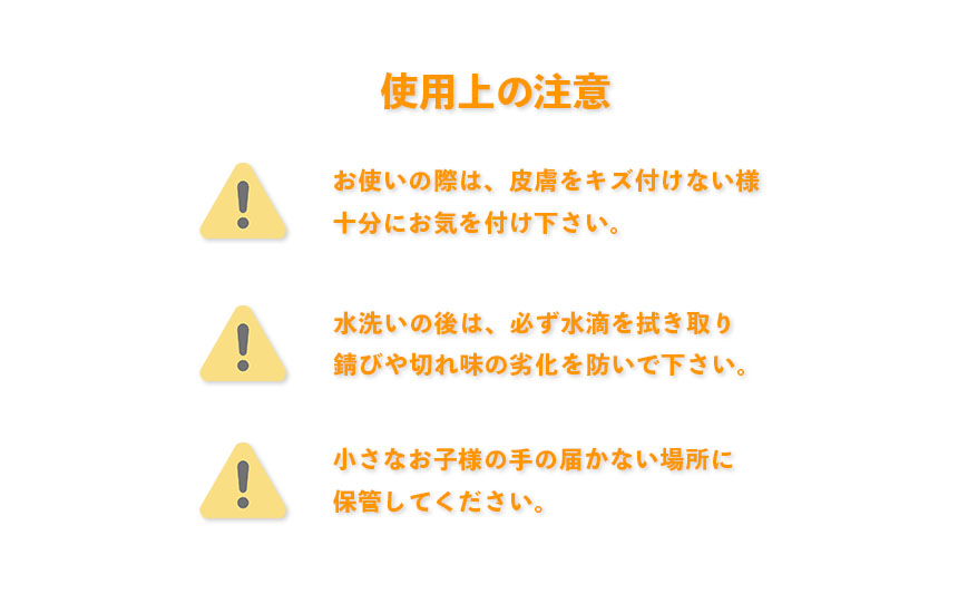▼ご使用の際は皮膚を気付付けない様、注意してお使いください