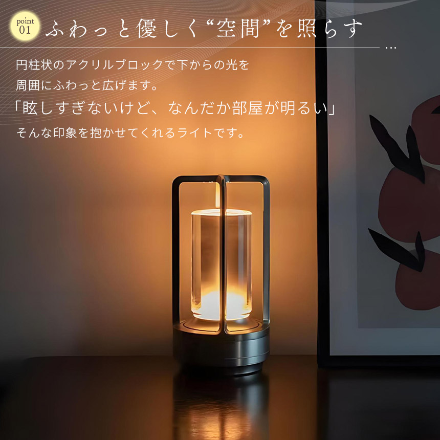 ベッドライト/ナイトライトとして、お部屋のインテリアとして、お店の雰囲気づくりに、キャンプ用としてなど様々な場面にマッチします。