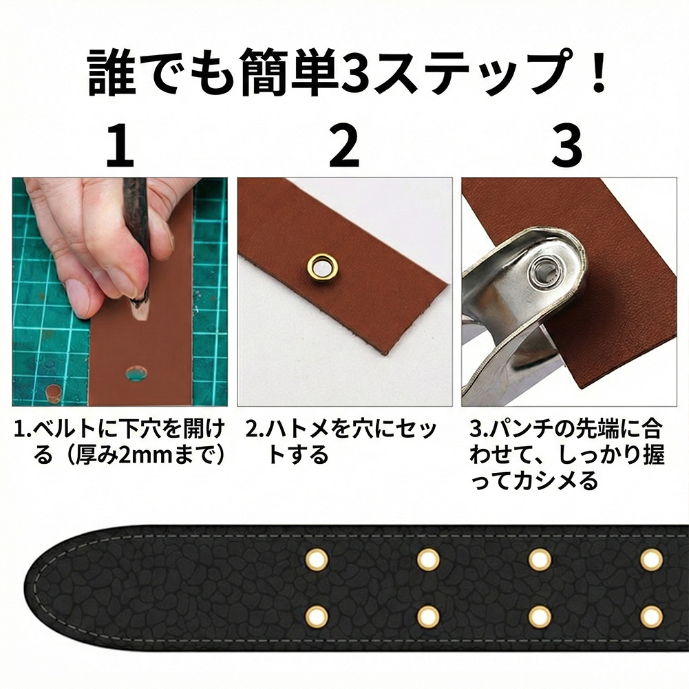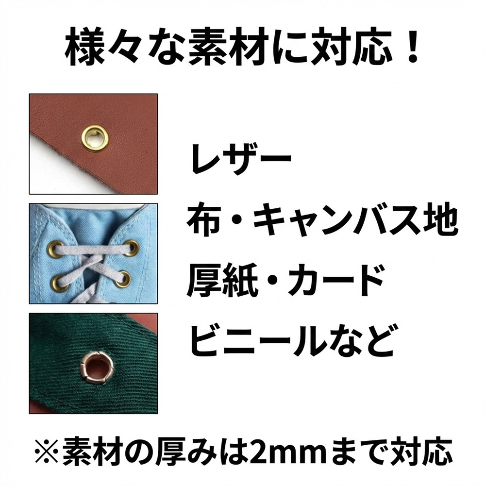 ・ファッション小物:靴紐の穴(アイレット)の補修、ベルトの穴補強に。