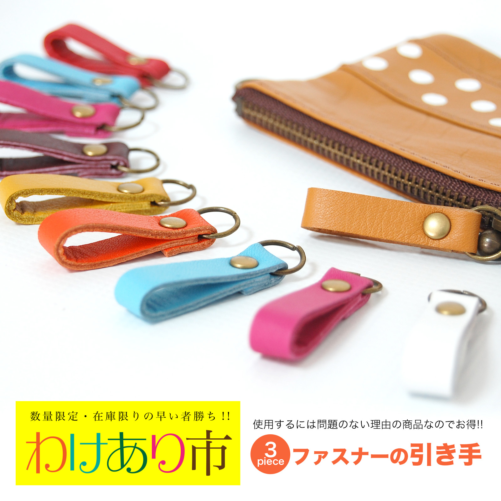 【訳あり】レザー(牛革) ファスナーの引き手 3個セット 財布 バッグ ハンドメイド クラフト 手芸 パーツ カラフル
