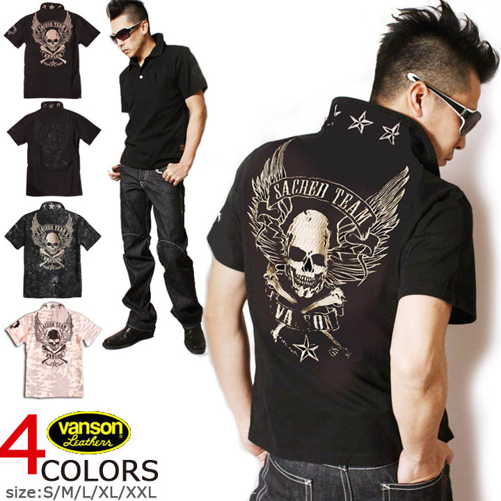 ここでしか買えないVANSON別注ポロ!バンソン VANSON ウイング スカル 刺繍 半袖 ポロシャツ NVPS-303 髑髏 ドクロ