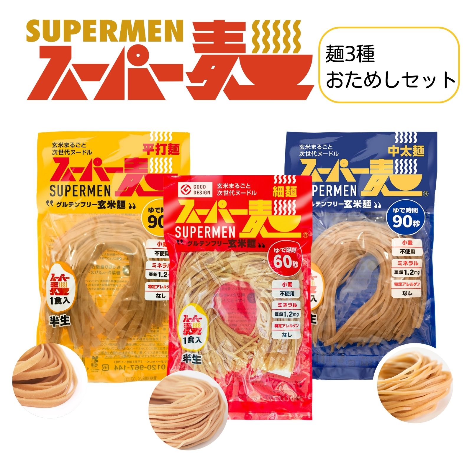 【100%国産麺★1,000円ぽっきり】スーパー麺 玄米麺 米粉麺「細+平打+中太:100g×各1食 3食」 グルテンフリー パスタ 麺 焼きそば ラーメン