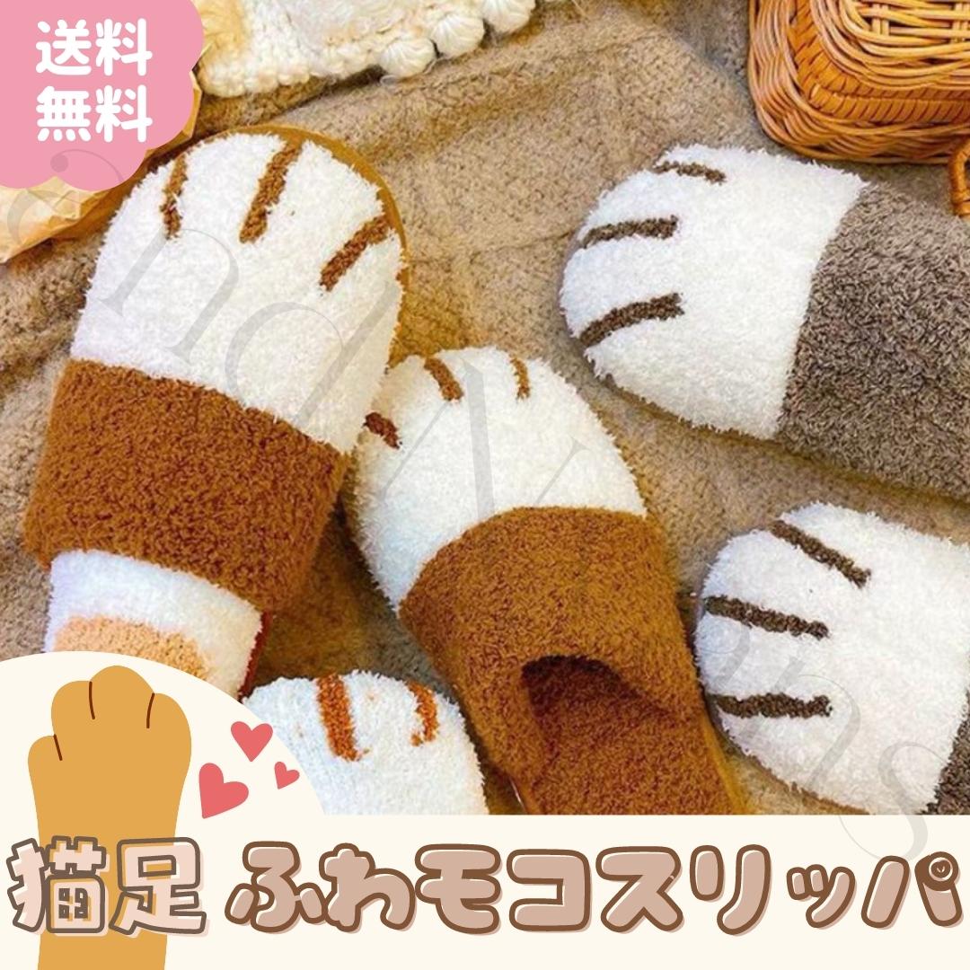 スリッパ 猫柄 猫 モコモコ ルームシューズ 男女兼用 ペア ふわふわ もこもこ 洗える 室内 猫足 ネコ 防寒 冷え対策 ねこ 来客用 カップル おしゃれ かわいい