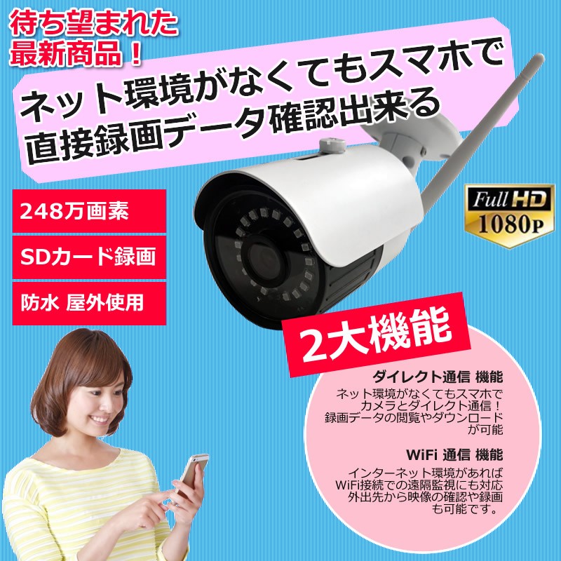 防犯カメラ sdカード録画 屋外 ワイヤレス バレット 家庭用 av-wf1080p36tf