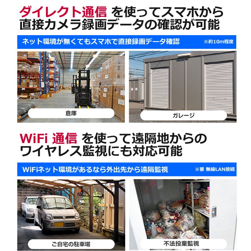 防犯カメラ ワイヤレス SDカード録画 屋外 家庭用 128GBまでのSDカードに対応した防水 248万画素 防犯カメラ レコーダーセット