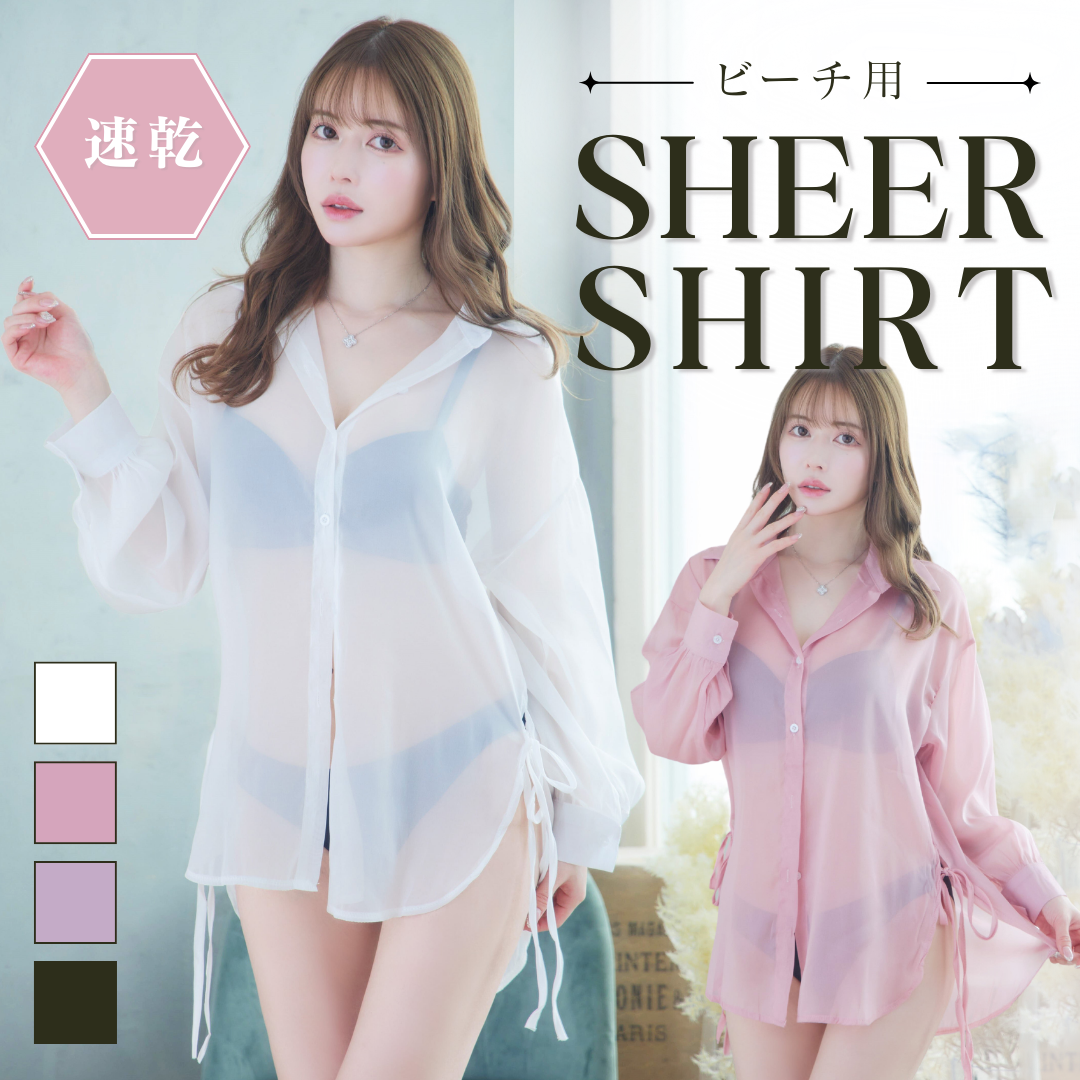 レディース ビーチ用 速乾 ホワイト ピンク パープル シャツ 羽織 シアーシャツ シースルー 体型カバー 水着 オーバーサイズ 長袖 ブラウス フリーサイズ