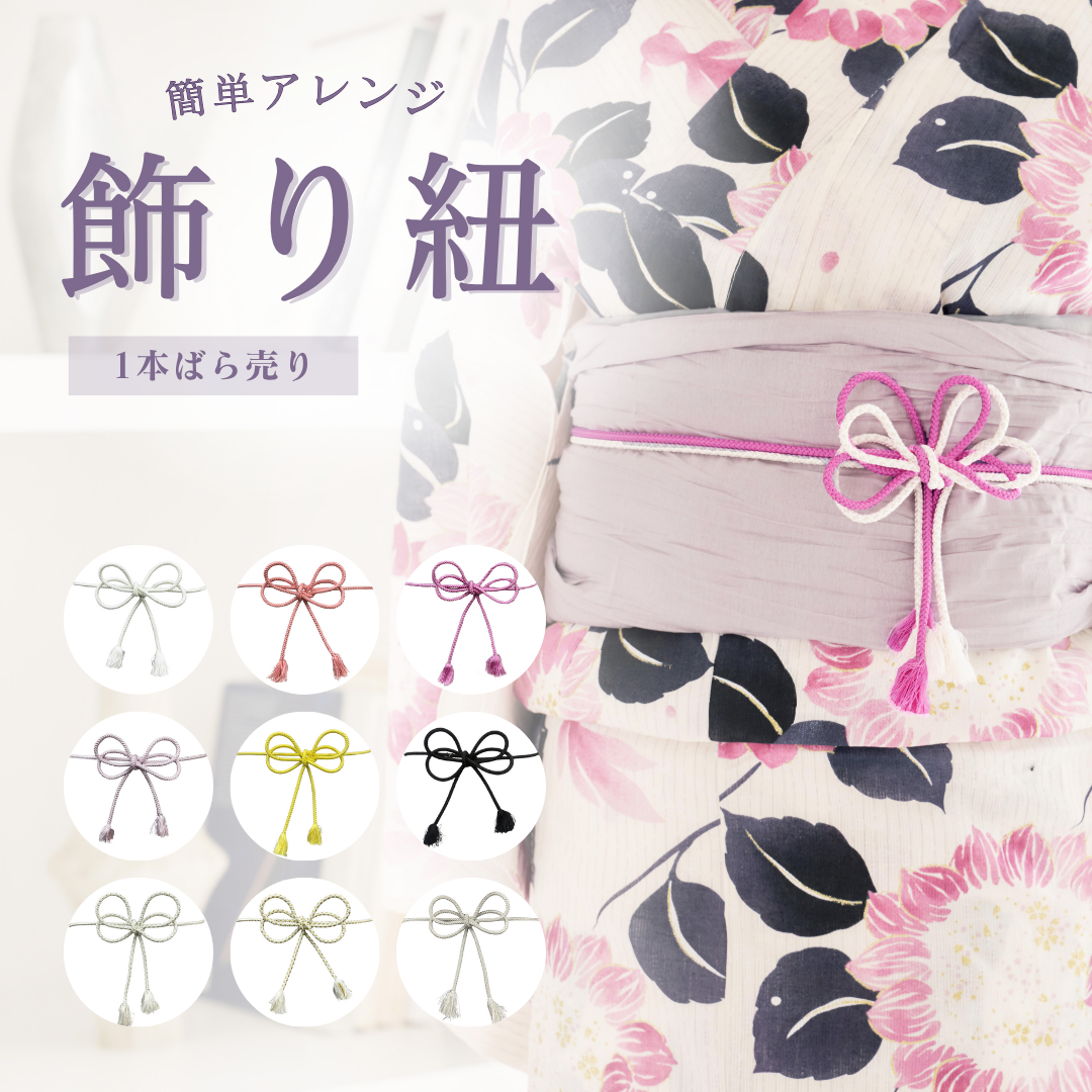 レディース 単品 飾り紐 浴衣用 女性 飾り帯 帯締め 単品 1本 ばら売り ホワイト ピンク 黄色 白 金 銀 紫 ラベンダー 黒 シンプル くすみカラー かわいい