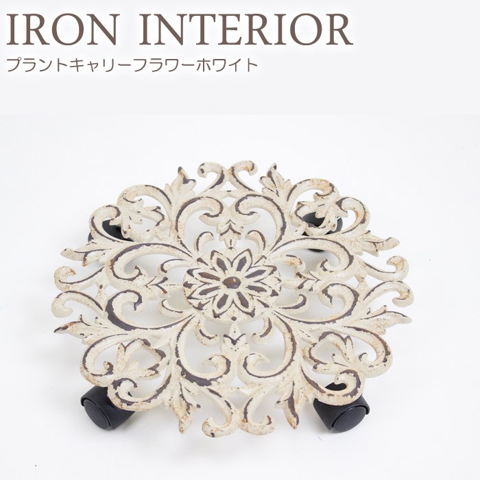 アイアン鉢置き プランター台キャスター付 丸型 直径30cm プラントキャリーフラワーホワイト 花台 鉢台 鉢スタンド 鉢置き台 フラワースタンド キャスター