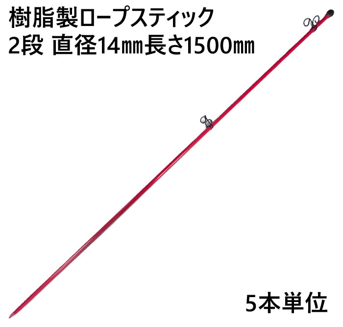 ■商品名:ロープスティック 樹脂製 2段 直径14×長さ1500mm フック穴径直径19mm 5本単位