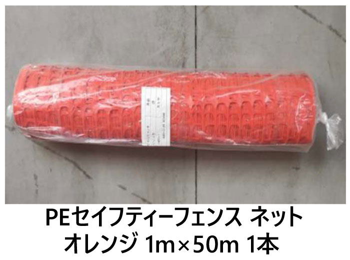 PEセイフティーフェンス ネット オレンジ HDPE 高密度 ポリエチレン 1m×50m 1枚単位 簡易 仕切り 工事現場 防護 打込み ロープスティック