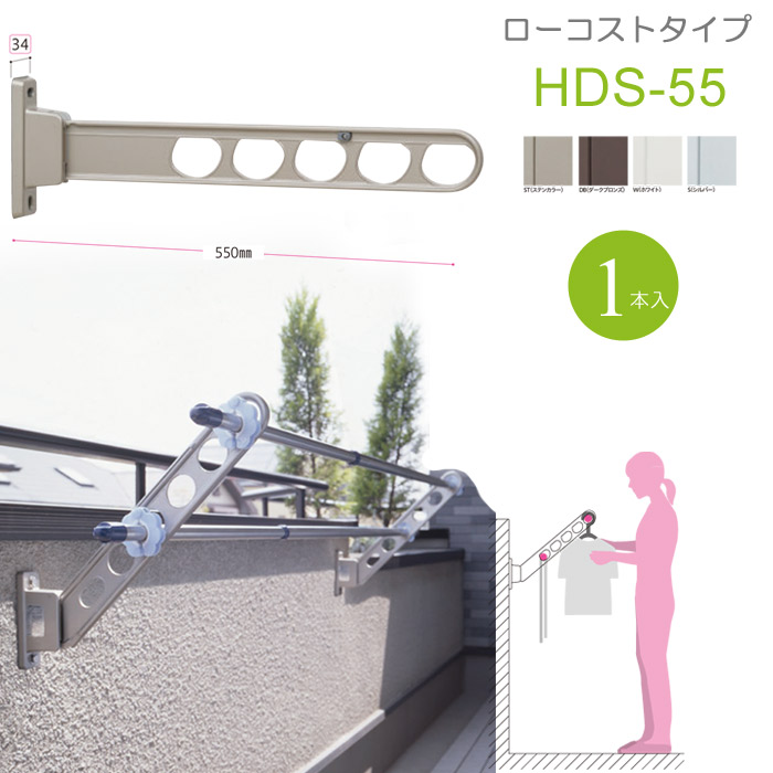 物干し竿受け 屋外 ベランダ 川口技研 ホスクリーン 腰壁用 HDS型55cm 収納型 スタンド1本 物干し 壁付け 物干し金物 物干金物 壁付 おしゃれ