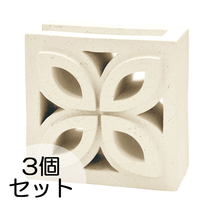 ブロック塀 アプローチ エントランス せっき質無釉ブロック ポーラスブロック200コーナー 190Fタイプ 白土(配筋溝あり・1面フラット)3個単位 屋外壁 diy