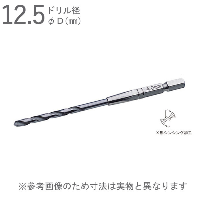六角軸 シャンク 鉄工ドリル X形シニング 径12.5×全長110×溝長70mm