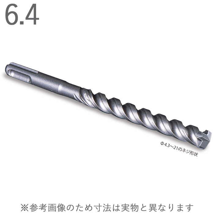 ハンマードリル コンクリートドリル デルタゴン SDS-プラス 刃先径6.4×全長166mm 有効長100mm 3枚刃 ネジタイプ