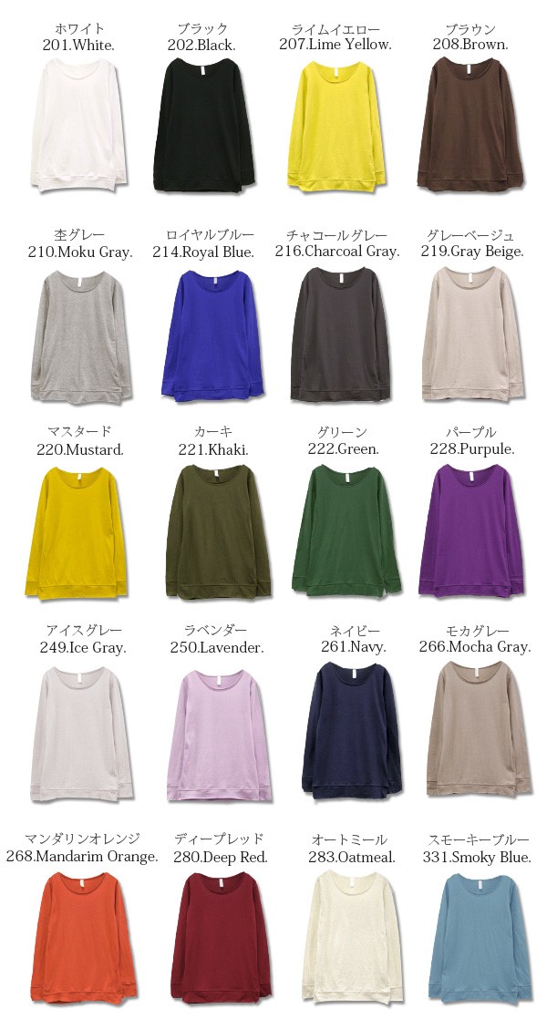 商品名:日本製/綿100%シンプルカラーロングカットソー