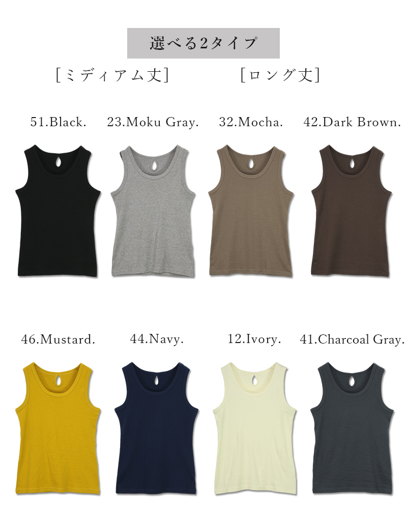 商品名:日本製 綿100% スムースロングカラータンクトップ