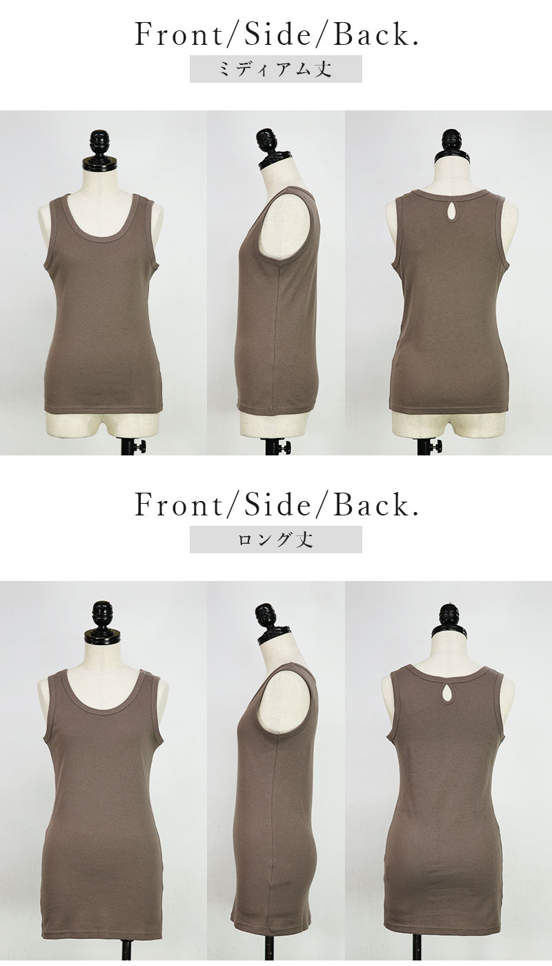 タンクトップ レディース ロング丈 60代 50代 40代 30代 20代