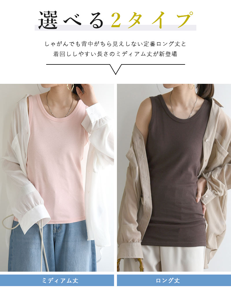 タンクトップ レディース 綿 日本製 ロング インナー チラ見え防止 コットン 春 夏 トップス 大きいサイズ 秋 冬 黒 白 おしゃれ