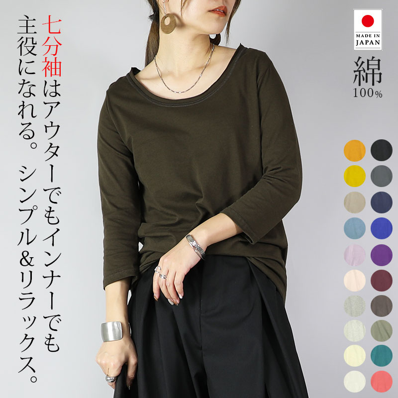 カットソー レディース 秋 七分袖 ロンt tシャツ ロング 無地 綿 コットン 日本製 大きいサイズ 春 夏 20代 30代 40代 50代 60代 おしゃれ