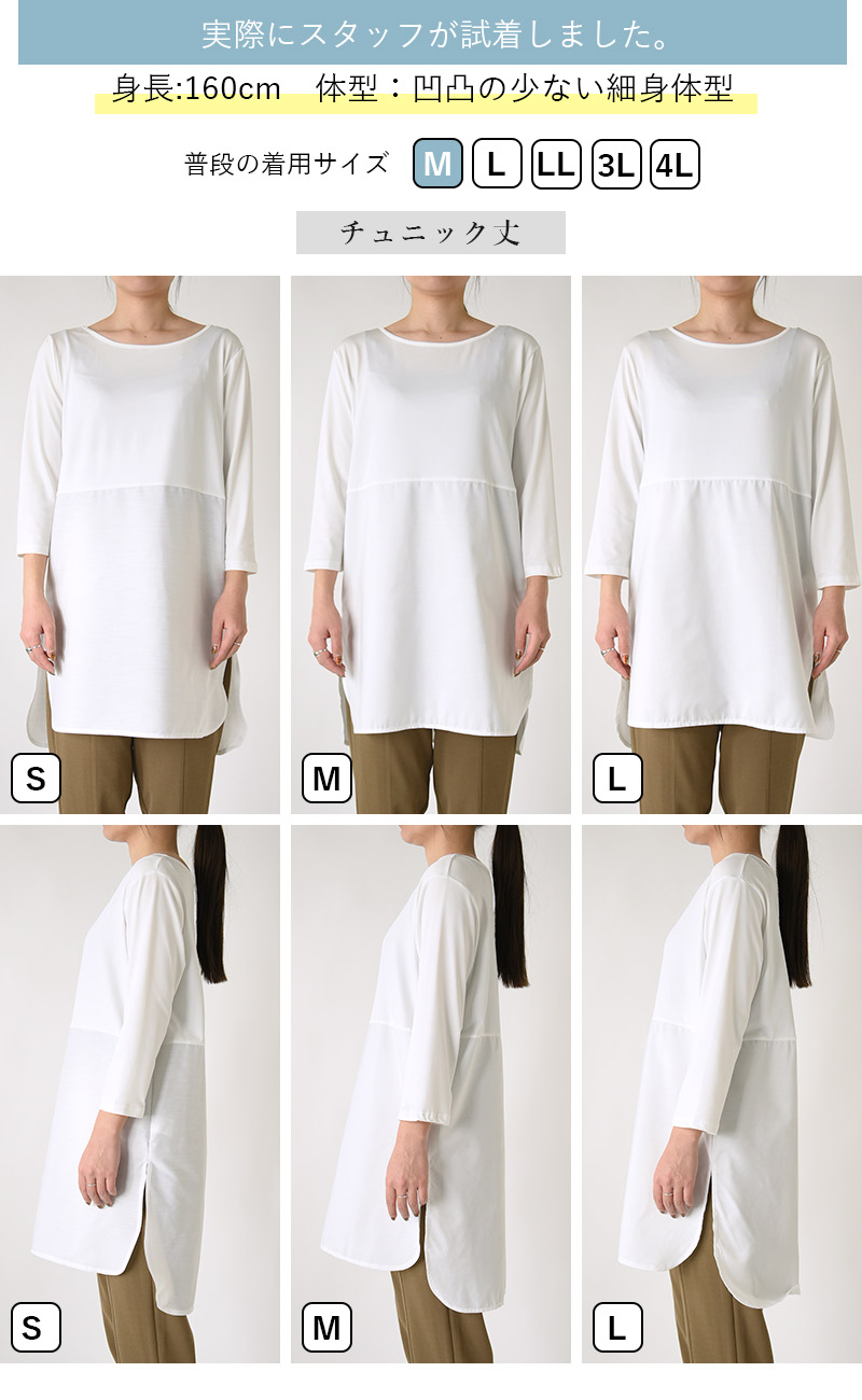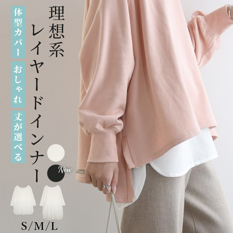 インナー レディース 選べる レイヤードインナー トップス 切り替えシャツ 七分袖 カットソー チュニック 体型カバー 白 おしゃれ