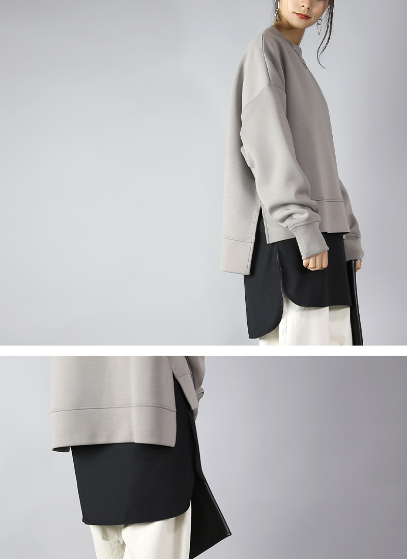 柔らかな肌触りのカットソーとハリ感のあるシャツ生地。