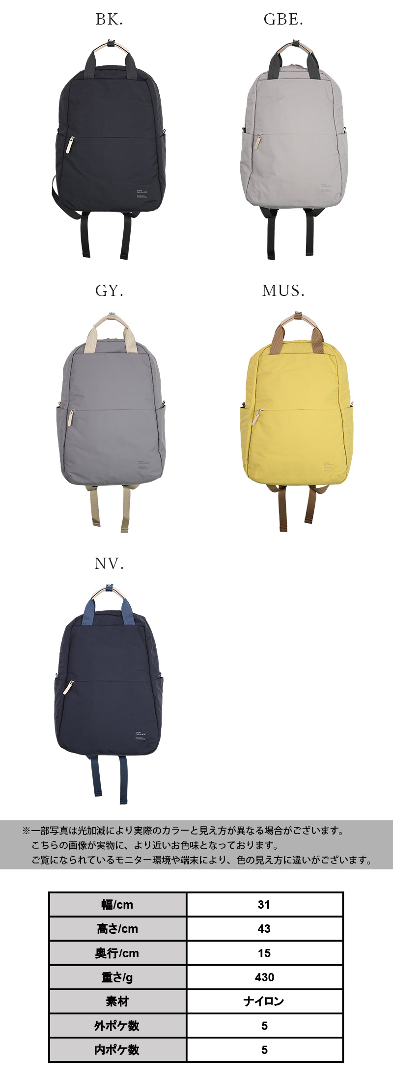商品名:anello GRANDE サブレ10ポケットハンドル付きデイパック