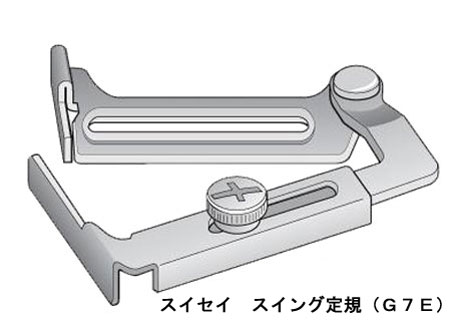 ミシンの押さえの横に、ネジで固定して使用するT型定規です。この定規を使用すると、安定したステッチ幅で縫うことが出来ます。定規を使用しない時は、簡単にガイド部分をずらすことの出来るスイングタイプの定規です。