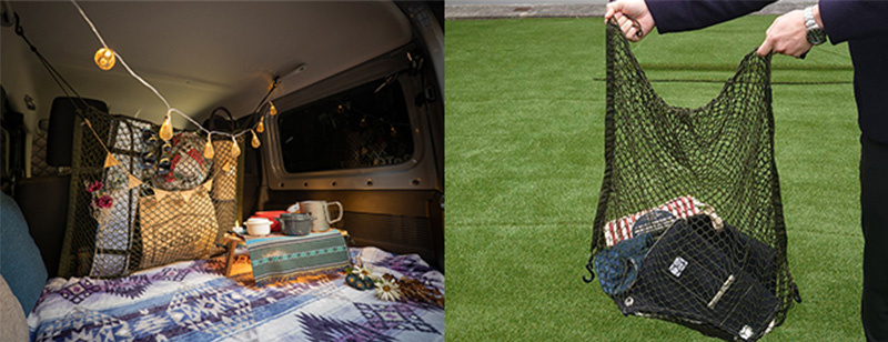 ポケット形状で車内に荷物を収納でき、ラゲッジスペースを有効活用