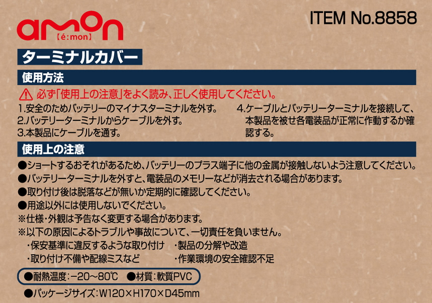 8858 エーモン amon バッテリーターミナルカバー プラスマイナスセット
