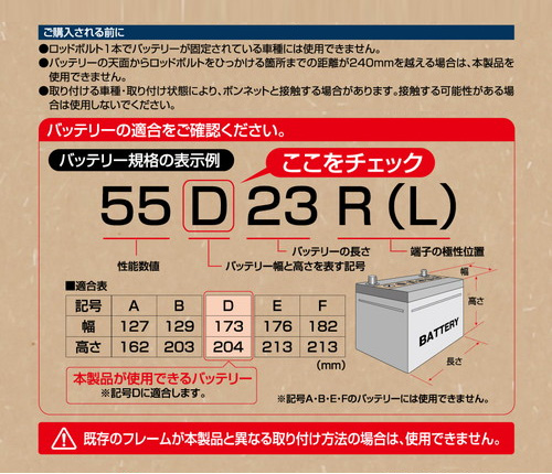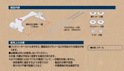 サイズアップ時の固定に。D23/D26/D31などのバッテリーに対応。シルバー塗装の締め付けプレートでエンジンルームをドレスアップ。
