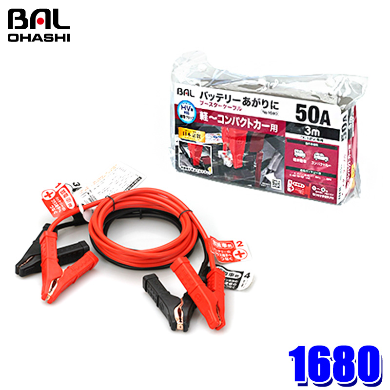 1680 大橋産業 BAL ブースターケーブル 12V・50A・3m 軽自動車〜コンパクトカー ハイブリッド車対応