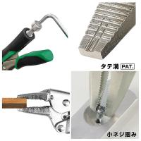 掴んだら離さない、バイス型ネジザウルス。狭く奥まった場所での作業に便利なミドルノーズタイプ。潰れたネジ、錆びたネジを先端のタテ溝で掴んで回せます。独自の先端形状により、頭の低いネジ(トラスネジ)にも対応。スリムな先端で奥まった場所での作業にも使用できます。バイス機構がネジを掴んでロックするため、固く閉まったネジでも、少ない力で回せます。レバー操作なく簡単、安全に解除できるイージーリリース機構を採用。口開き幅を調節する事でさまざまなワークの固定に使用できます。 ※タッピングネジ、ドリリングネジ、コーススレッドなどの硬度が高いネジや、接着剤や錆で完全に固着したネジには使用しないでください。 ※画像はイメージです。実際の商品とは異なる場合がございます。 ※パッケージにつきましては、メーカーの仕様変更等により予告なく変更になる場合がございます。パッケージの違いによる返品・交換は承っておりませんので予めご了承ください。 |