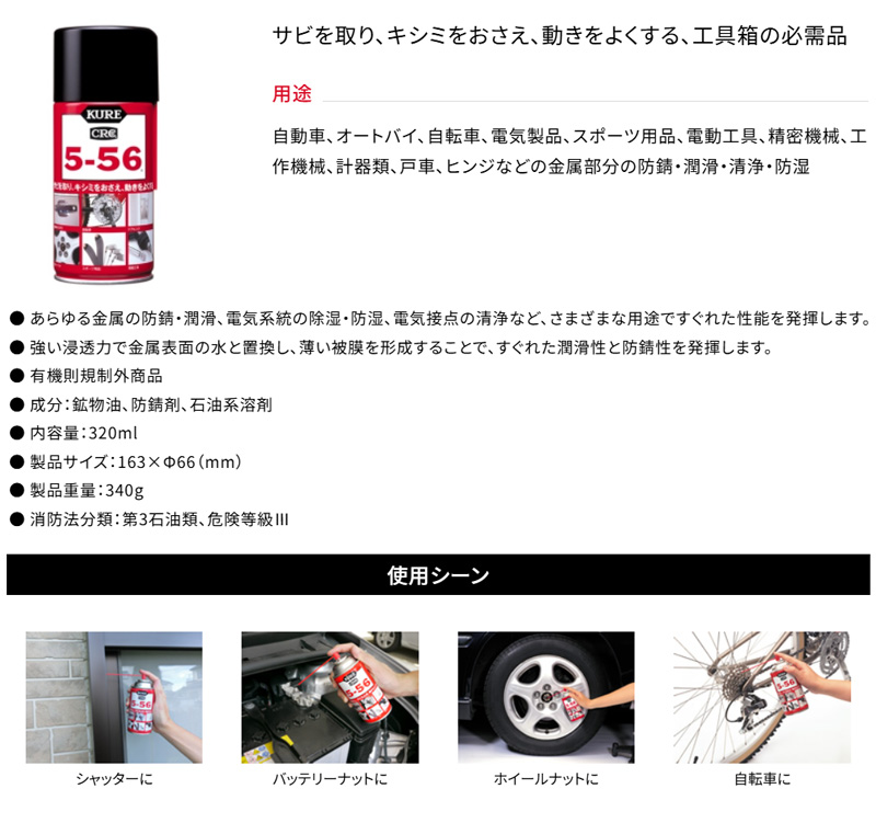 1004 NO1004 KURE 呉工業 クレ CRC 5-56 320ml 潤滑剤 防錆 清浄 防湿 (沖縄・離島 配送不可)
