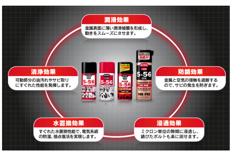 あらゆる金属の防錆・潤滑、電気系統の除湿・防湿、電気接点の清浄など、さまざまな用途ですぐれた性能を発揮!