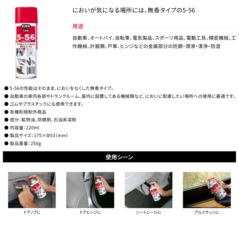 1025 NO1025 KURE 呉工業 クレ CRC 5-56 無香性 220ml 潤滑剤 防錆 清浄 防湿 (沖縄・離島 配送不可)
