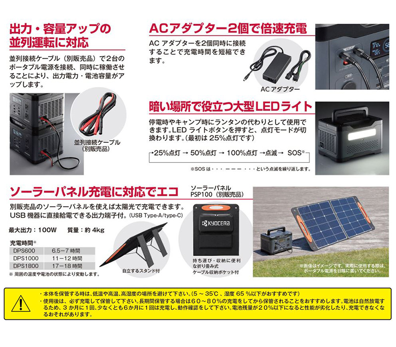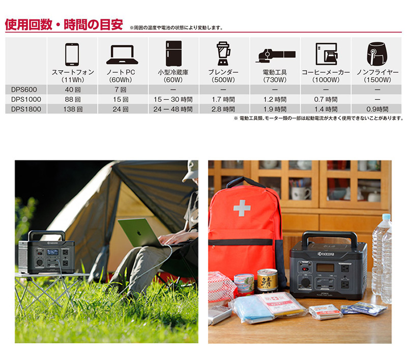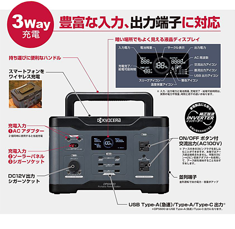 DPS600 京セラ KYOCERA ポータブル電源 600W バッテリー容量509.6Wh ポータブルバッテリー 充電器 車中泊 防災グッズ キャンプ アウトドア