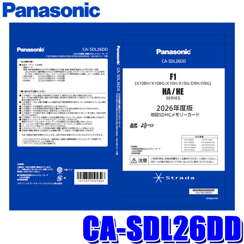 2025年12月発売(2026年度版)地図更新SD。ストラーダカーナビ F1X10BH/X10BG/X10H/X10G/D9H/D9G・HA/HEシリーズ用。