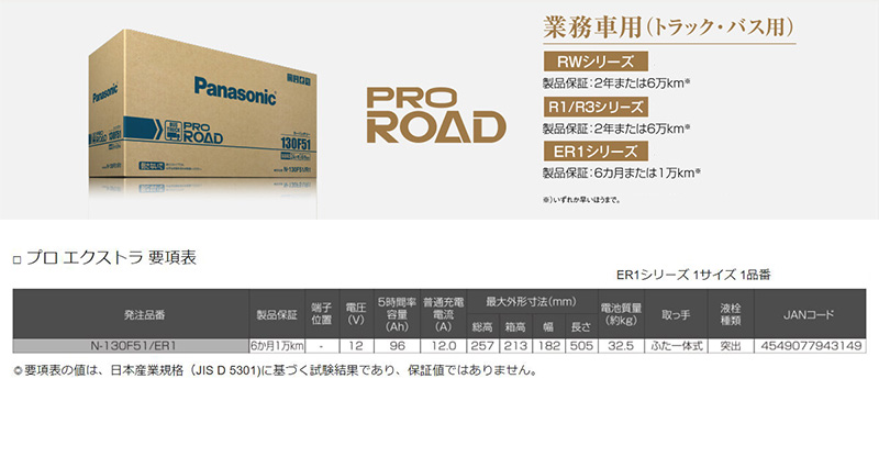 N-130F51/ER1 Panasonic パナソニック PRO EXTRA プロエクストラ 業務車用バッテリー トラック・バス用 (沖縄・離島 配送不可) [廃バッテリー回収不可]