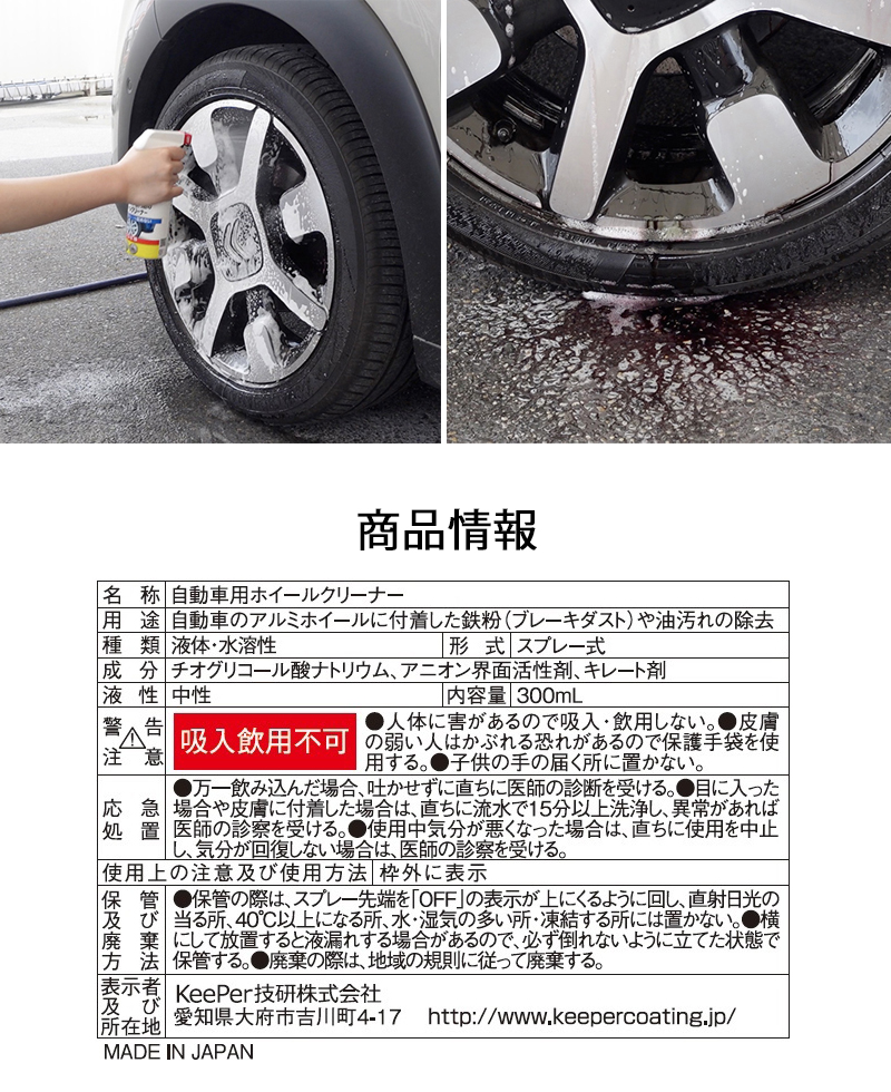 また、特殊な洗剤が配合されており、鉄サビだけでなく油汚れも強力に分解することもでき、ホイールの洗浄剤として非常に高い効果を発揮することができます。