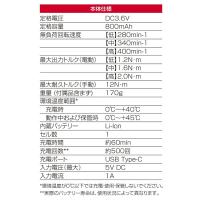 ●用途に合わせて回転数とトルクを3段階で切替可能。 ●強化ギア&ハウジングで、強度20%アップ。 ●充電ポートには端子の方向性がなく迷わず接続できる、USB Type-C採用。 ●落下防止コードを取り付け可能。 | |