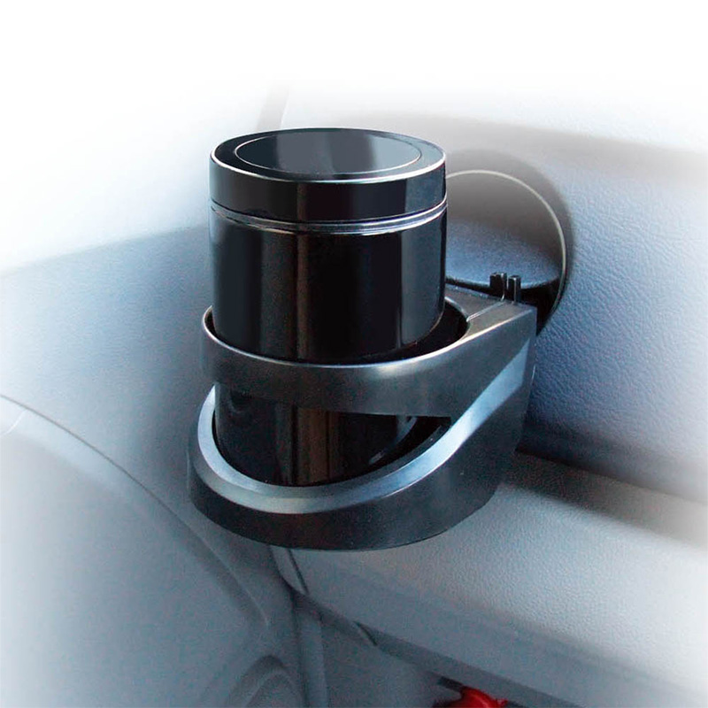 ●突起形状等がないφ66mmの円柱形状で、ドリンクホルダーにすっぽり入る。
