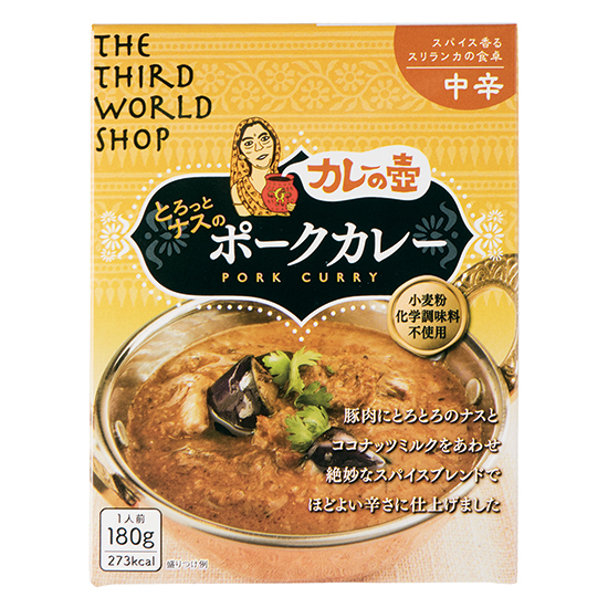 | 商品特徴 | 第3世界ショップ カレーの壺 レトルト とろっとナスのポークカレー 中辛 180g 【原材料名】 野菜(なす、たまねぎ)、豚肉、ココナッツミルク、トマトペースト、ココナッツオイル、香辛料、乾燥ココナッツ、米、食塩、醸造酢/安定剤(グァーガム)※グァーガムとはグァー豆の胚乳部分を粉砕したものです。 【内容量】 180g(1食分) 【賞味期限】 (製造日より)18ヶ月 【生産国】 スリランカ 【備考】 本品は、えび・大豆を含む製品と共通の設備で製造しています。 【商品説明】 18種類以上の厳選されたスパイスやハーブ、香味野菜のうまみをぎゅっと閉じ込めた「カレーの壺」がベースのレトルトカレーです。小麦粉は使わず、純スリランカ風にスパイスと炒めた玉ねぎのみでとろみをつけています。 中辛のポークカレーは、豚肉にとろとろナスとココナツミルクを合わせて、絶妙なスパイスで程良い辛さに仕上げました。 小麦粉・化学調味料・保存料不使用 スリランカカレーに欠かせないココナッツミルクは自社工場で製造 使用するスパイスやハーブの多くは、自社農園または契約農家で栽培・加工 メイン具材である豚肉は、自社農園で飼育された豚を使用 1人分のお食事や保存食にもぴったり 生産者マリオさんについて マリオさんはスリランカが良質なスパイスが育つ環境にありながら、 それが上手く産業として農家の収入につながっていないことに着目。生産農家の自立を支援することによって、 スリランカの農村から直接世界へ通じるマーケットを開くことに取り組み、農家へ有機栽培の指導をしています。工場では福利厚生は充実し、 スリランカではめずらしい従業員住居、無料の食堂、レクリエーション施設などがあります。 障害者の雇用促進や、従業員の子供などへの奨学金制度、 2009年まで続いたスリランカ内戦の元少年兵や 戦争未亡人などの雇用促進等、様々な地域の問題解決に積極的に取り組んでいます。 |