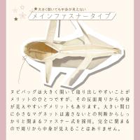 ヌビバッグは大きく開いて取り出しやすいことがメリットのひとつですが、その反面周りから中身が見えやすいデメリットもあります。大きい間口に小さなマグネットは適さないとの判断からしっかりと閉まるファスナー式を採用。完全に閉まるので周りから中身が見えることはありません。