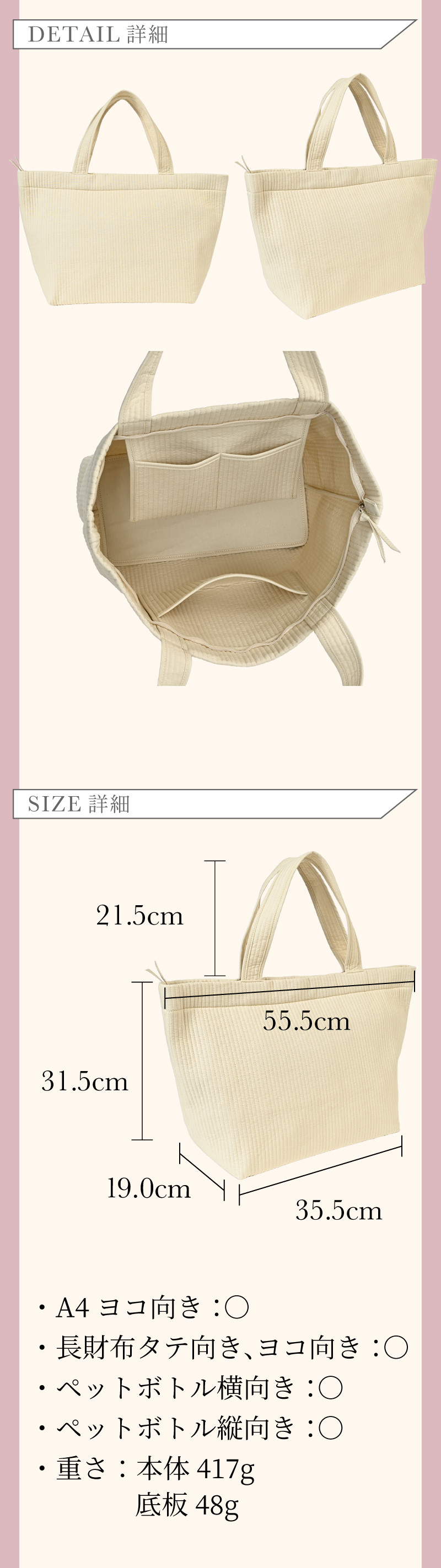 ・サイズ:高さ約31.5cm 幅約35.5~55.5cm マチ約19.0cm