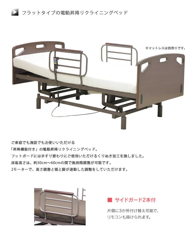 電動ベッド 介護ベッド 2モーター 電動リクライニングベッド リクライニングベッド シングルサイズ 電動昇降 昇降機能付き