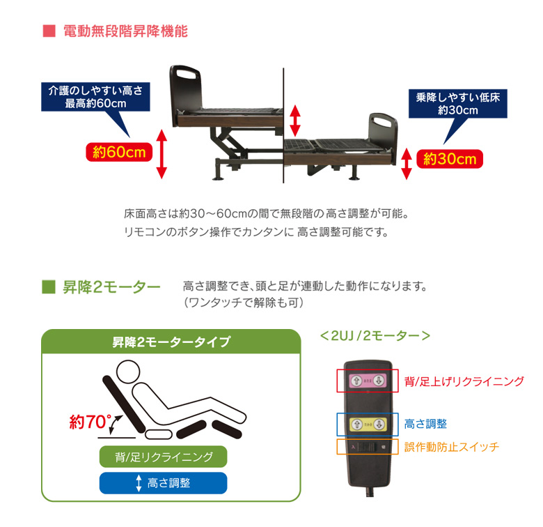 電動ベッド 2モーター 介護ベッド 電動リクライニングベッド