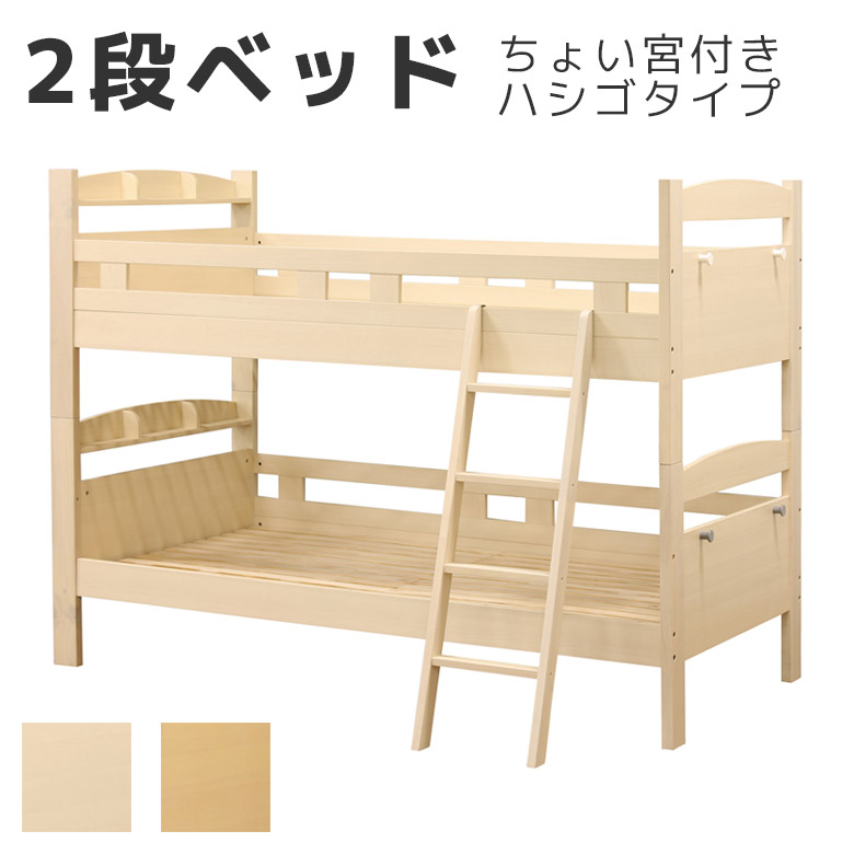 2段ベッド はしご付き 二段ベッド 宮棚付き 棚 子供 大人 はしごタイプ 分割 分割可能 シングルベッド 安心設計 天然木 ラバーウッド MDF ウレタン塗装