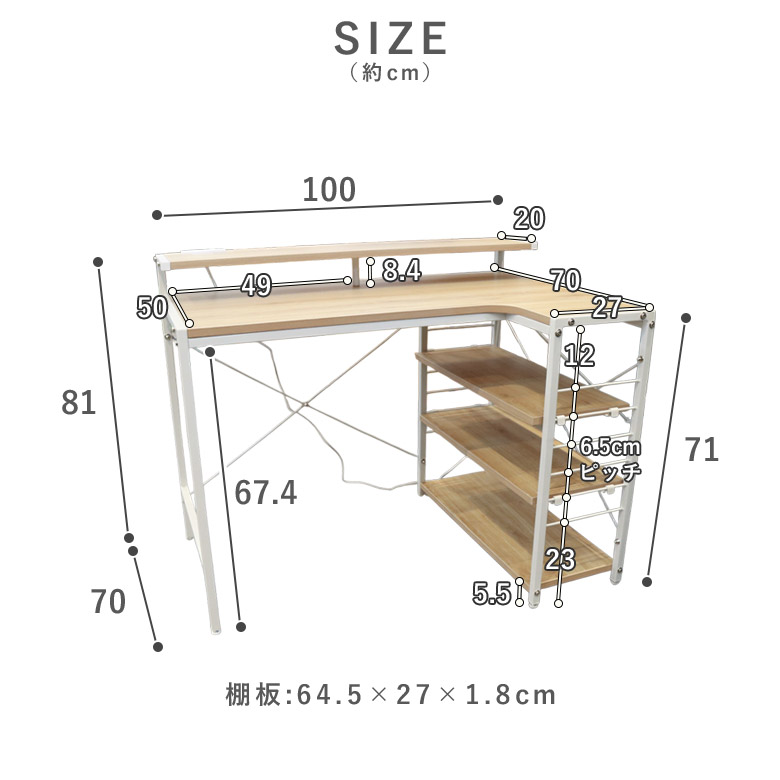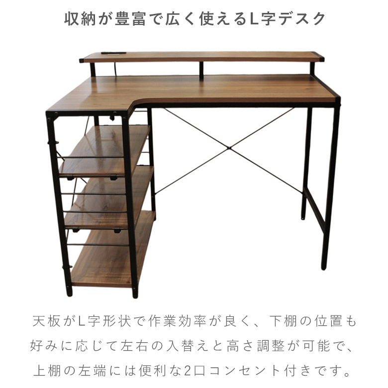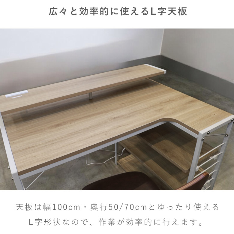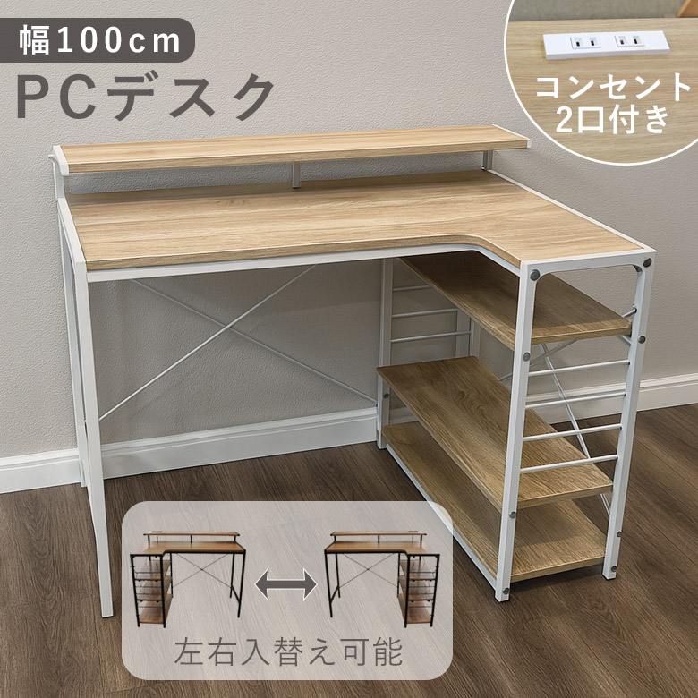 パソコンデスク L字型 100cm 高校生 勉強机 大人 L字 L字デスク デスク コンパクト 省スペース 机 収納 学習机 収納ラック付き 平机 リモートワーク 学習デスク