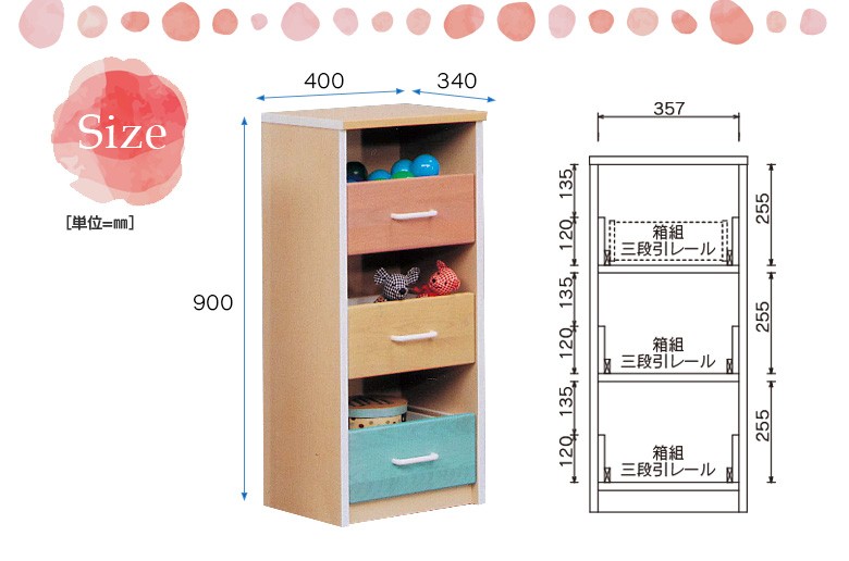 チェスト 引出し 3段 収納 幅40cm おしゃれ 3段チェスト 収納棚 子供 キッズ 3色引き出し タンス キッズ家具